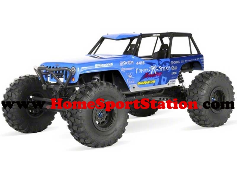This is an Axial Jeep Wrangler Wraith - Poison Spyder 1/10th Scale Ready-to-Run 4WD Electric Rock Racer. Based on a long-standing relationship between Axial, Jeep and Poison Spyder, this Jeep Wrangler Wraith is the culmination of efforts between these three iconic off-road lifestyle brands.