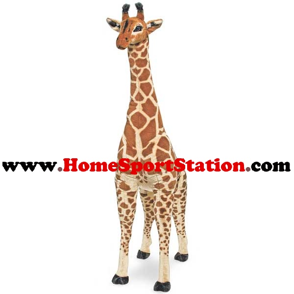 Bring a touch of the exotic into any playroom with this oversized giraffe plush. Standing at over four feet tall, this gentle giant features authentic details and quality construction that make it easy to love.