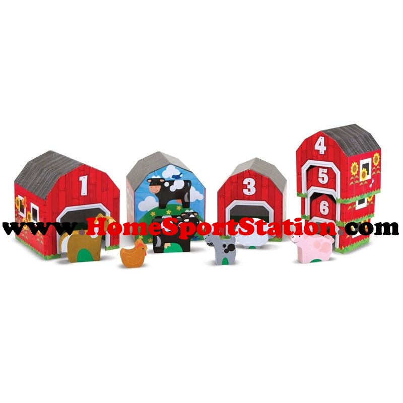 Take six nesting and sorting blocks, add six numbered animals to go inside, and what do you have? A farm full of stacking, counting, hide-and-seek, mix-and-match, imaginative play! This charming play set lets kids build a farm scene filled with bright red bas, with an animal for every ba. On their front panels, the bas feature doors sized to fit their animal occupants; on the back, a full-color scene showing the animal in an outdoor setting. Kids can also pair numbers on the bas and animals to put together the correct pairs, reinforcing early-leaing concepts as they play.